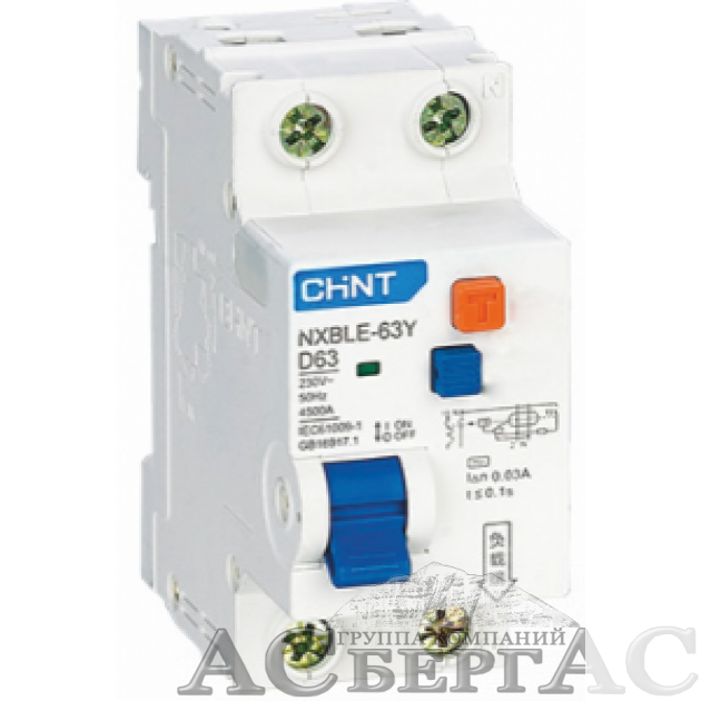 NXBLE-63Y Диф. авт. выкл. 1P+N 6А 30mA электронный тип AС, х-ка С, 4.5kA (R) CHINT