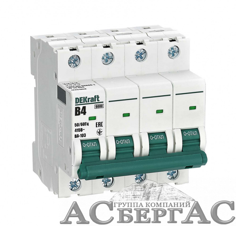 ВА-103 Автоматический выключатель 4-полюсный, 4А, 6kA (хар-ка B) DEKraft
