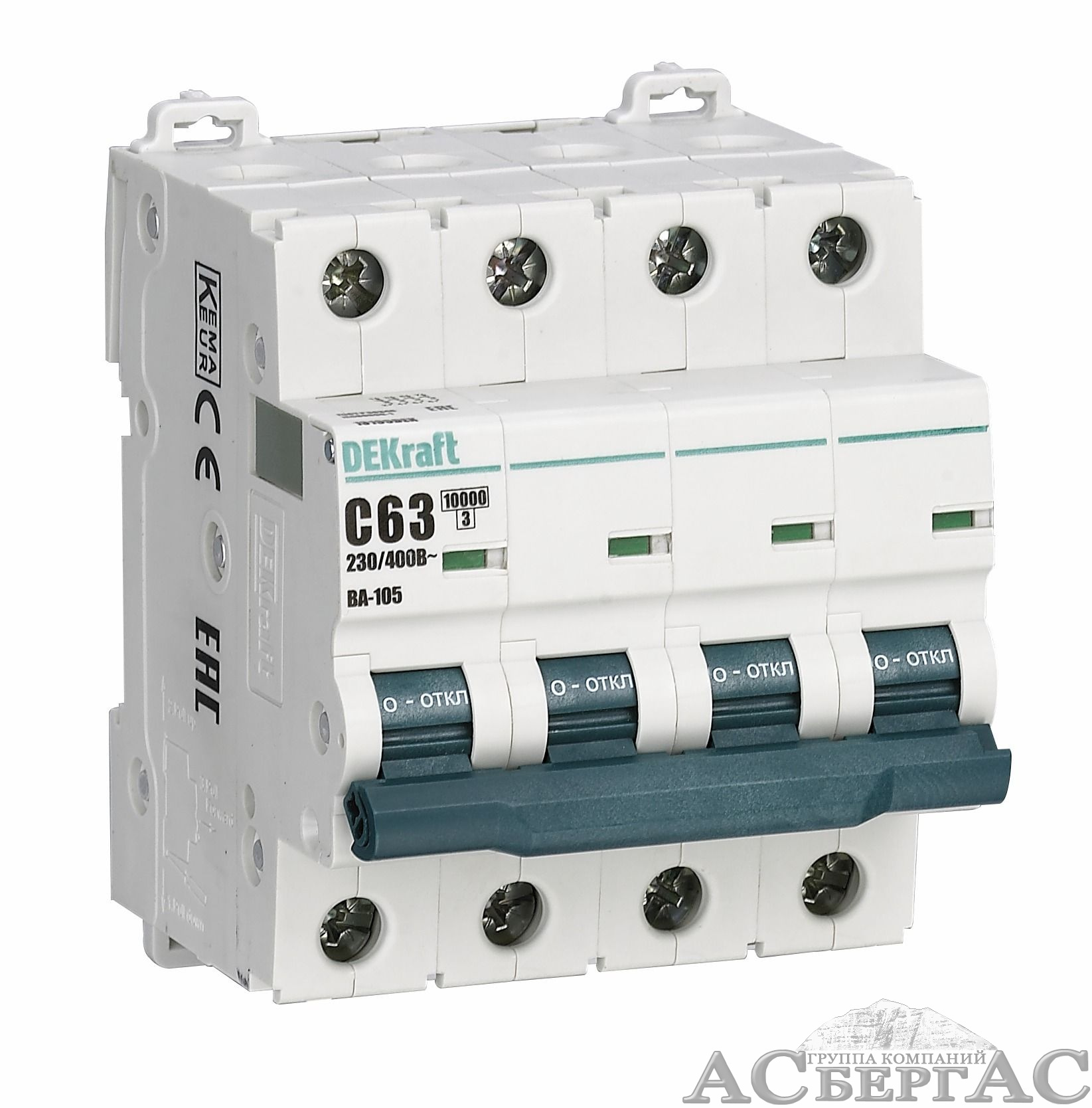 ВА-105 Автоматический выключатель 4-полюсный, 20А, 10kА (хар-ка B) DEKraft