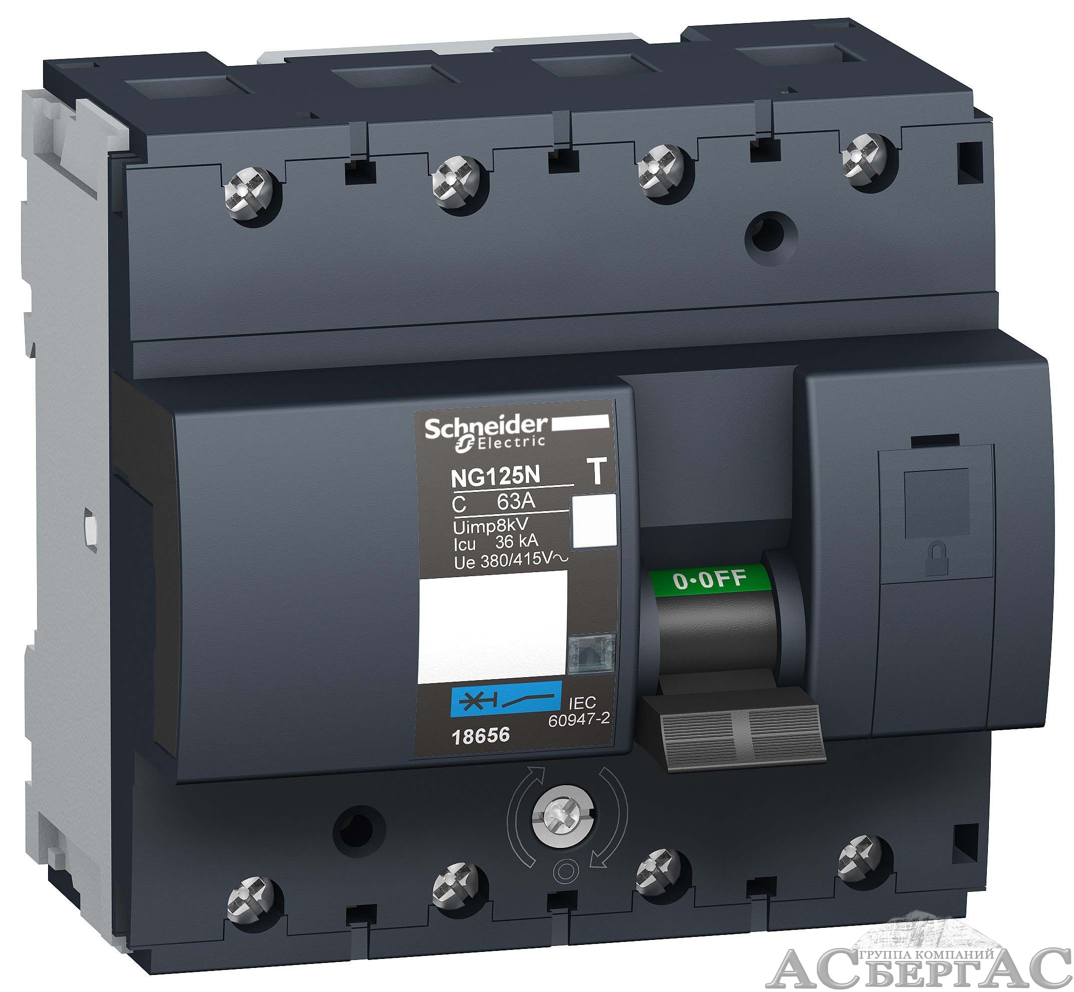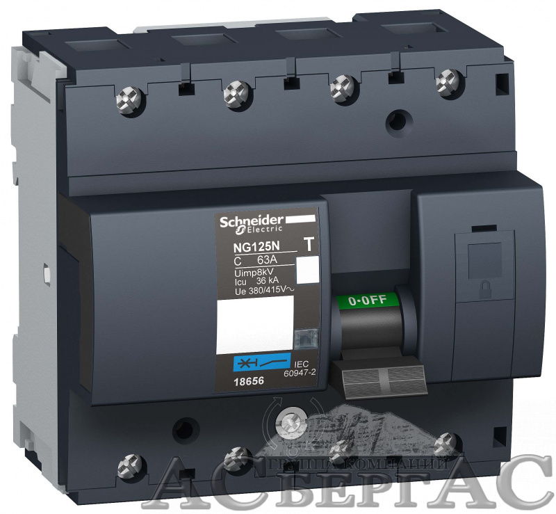 NG125N 4Р 63А Автоматический выключатель 4-полюсный, 63А, 25kA (хар-ка C) Schneider Electric