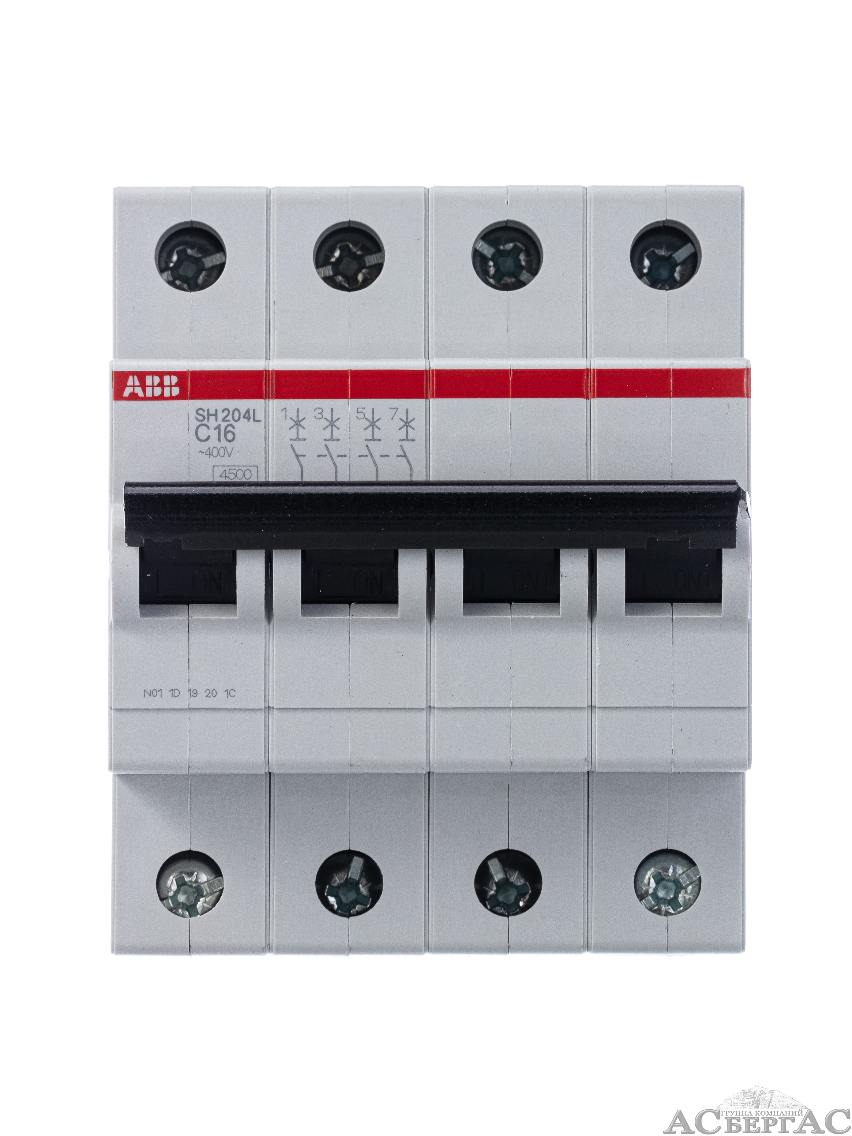 SH204L C16 Автоматический выключатель 4-полюсный, 16А, 4.5кА (хар-ка C) ABB
