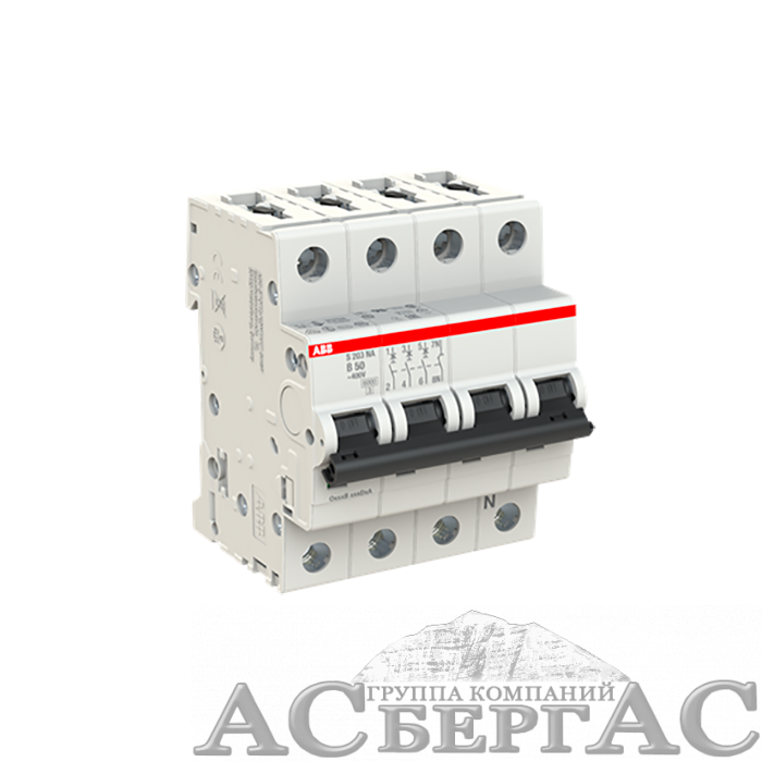S203 B50NA Автоматический выключатель 3P+N, 50А, 6кА (хар-ка B) ABB