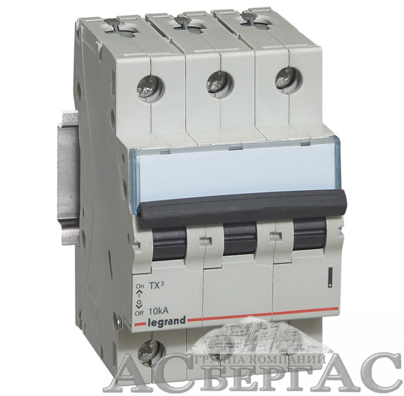 TX3 Автоматический выключатель 3-полюсный, 10А, 6kА (хар-ка B) Legrand