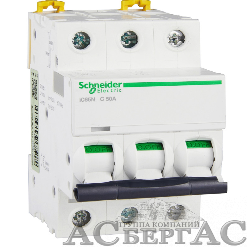 iC65N 3P 50А Автоматический выключатель 3-полюсный, 50А, 6кА (хар-ка C) Schneider Electric