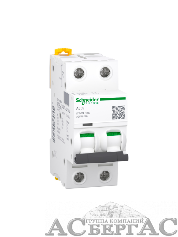 iC60N 2P 16А Автоматический выключатель 2-полюсный, 16А, 6кА (хар-ка C) Schneider Electric