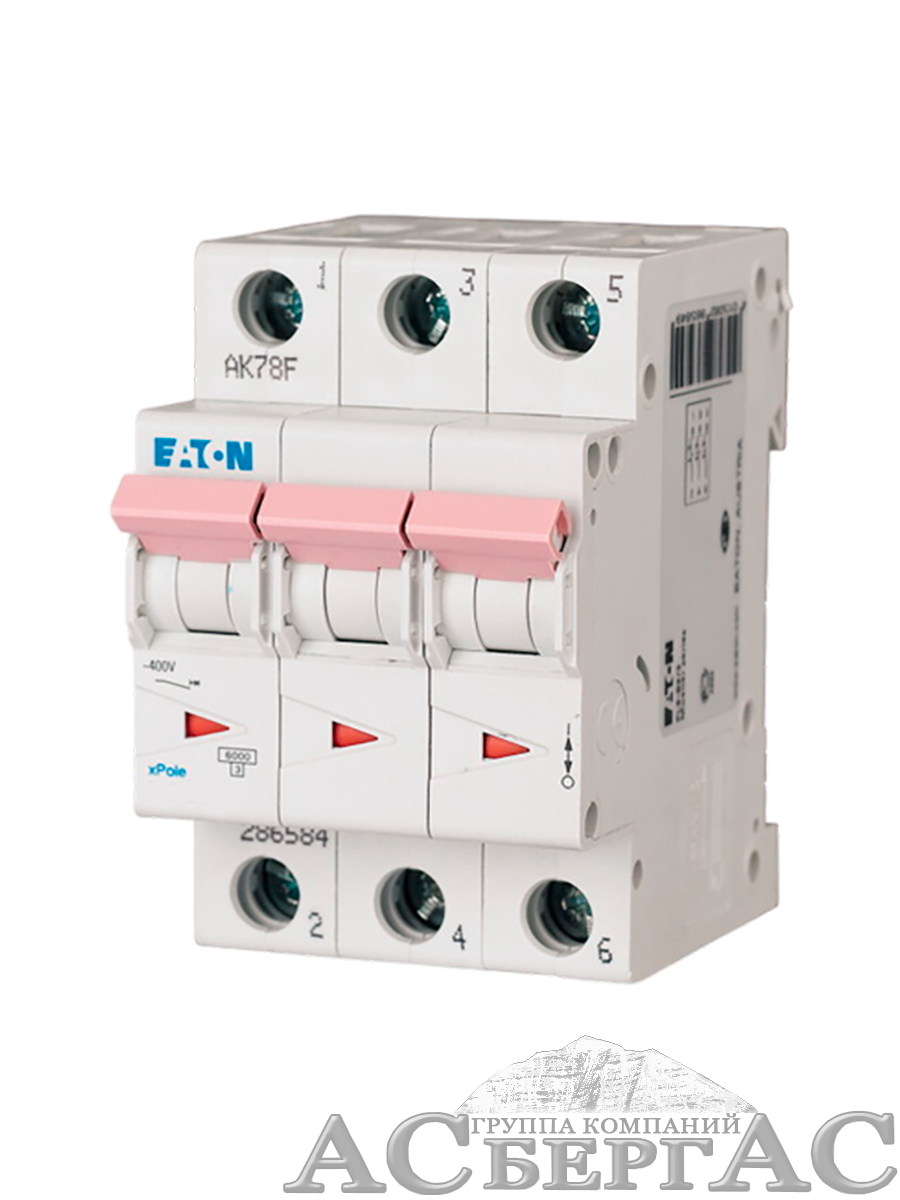 164898 PL6-D3/3 Автоматический выключатель 3-полюсный, 3А, 6kA(хар-ка D) Eaton