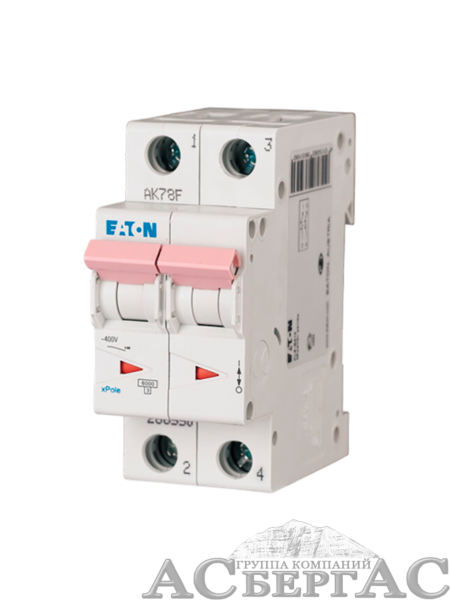 286568 PL6-C20/2 Автоматический выключатель 2-полюсный, 20А, 6kA (хар-ка C) Eaton