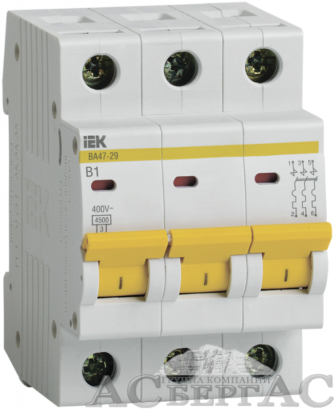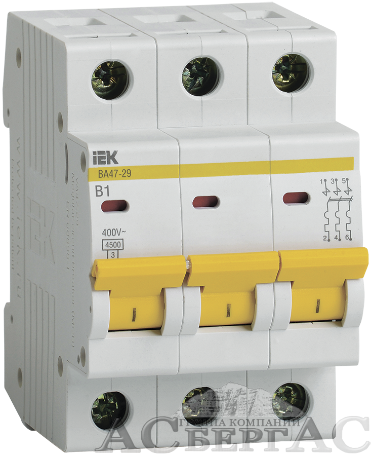 ВА47-29 Автоматический выключатель 3-полюсный, 1А, 4,5kA (хар-ка B) ИЭК