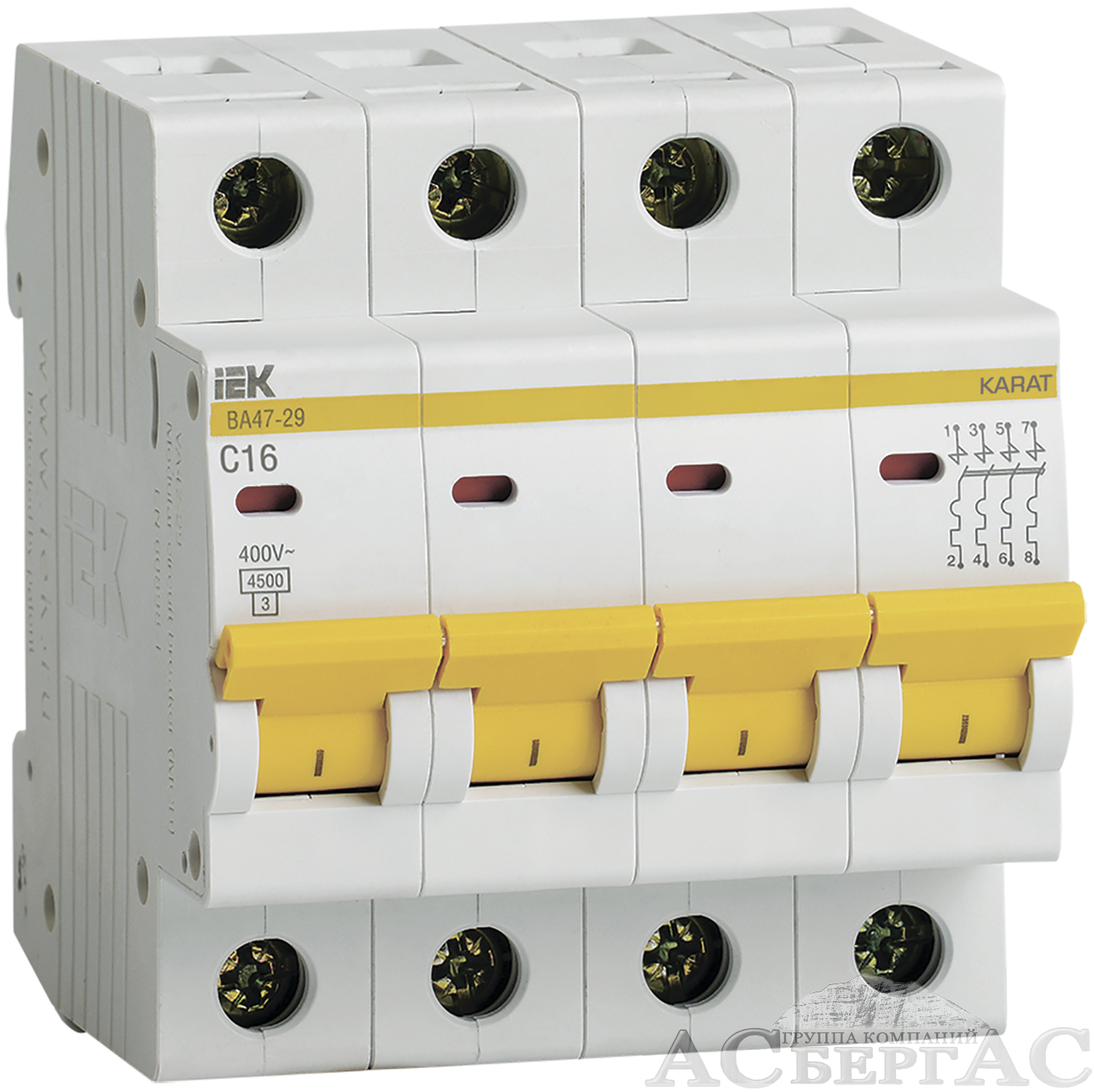 ВА47-29 Автоматический выключатель 4-полюсный, 16А 4,5kA (хар-ка C) ИЭК