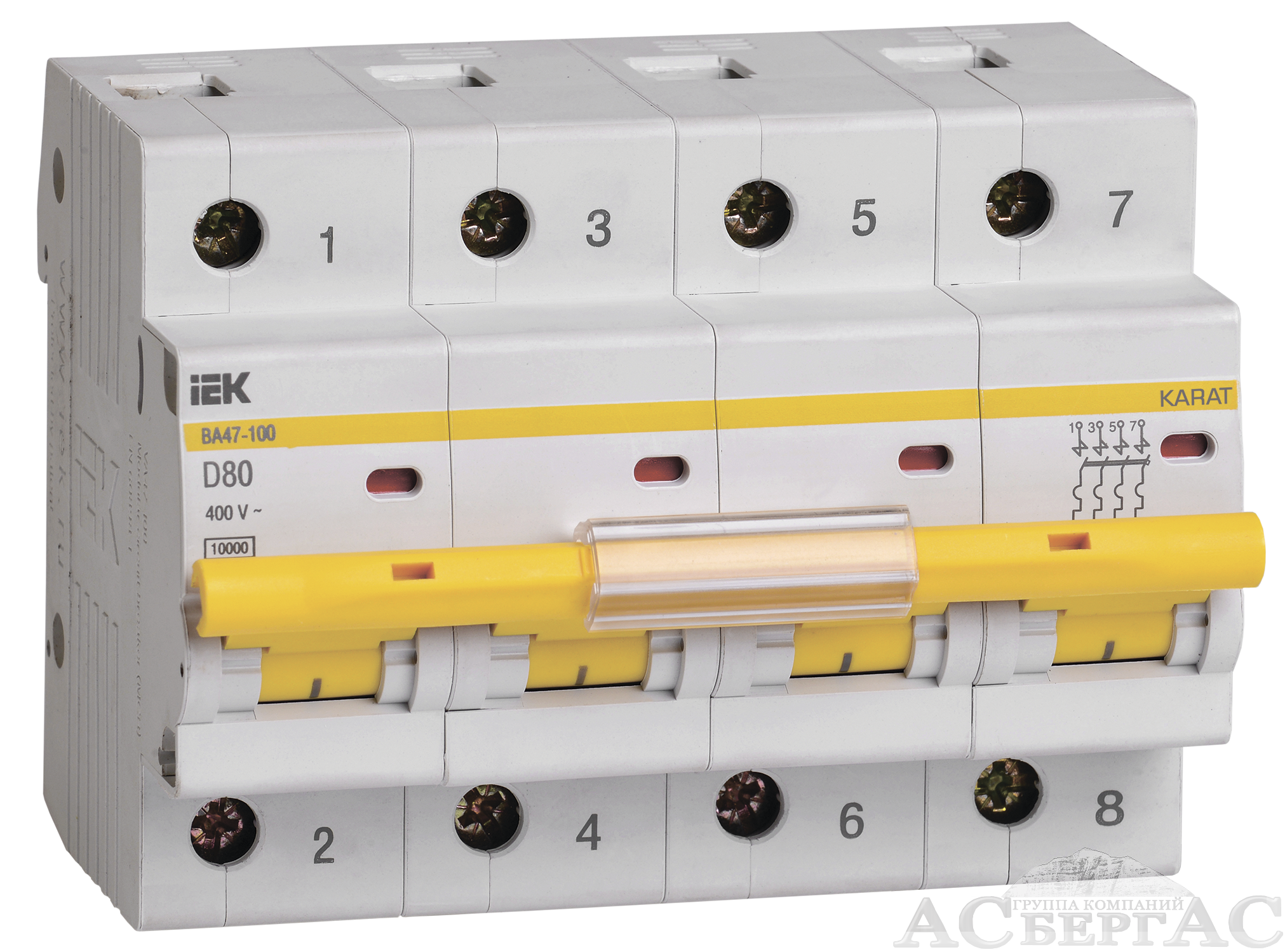 ВА47-100 Автоматический выключатель 4-полюсный, 80А, 10kA (хар-ка D) ИЭК