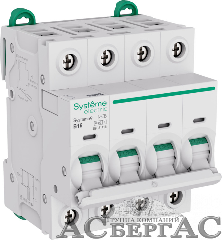 Автоматический выключатель 4-полюсный, 16A, 6kA (хар-ка B) Systeme9 Systeme Electric
