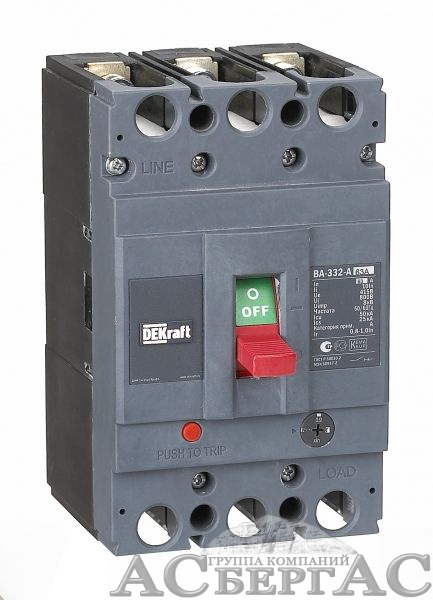 ВА332-3Р-0063А-A Автоматический 3-х полюсный автомат 63А с термомагнитным расцепителем (50,4-63А) 50кА DEKraft