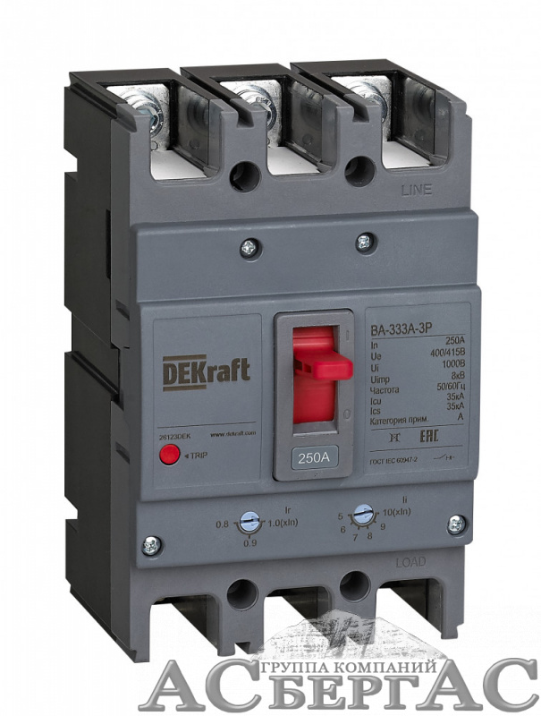 ВА-333А Автоматический выключатель 3-полюсный, 250A 35kA DEKraft