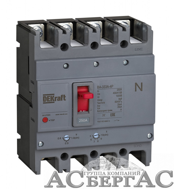 ВА-333А Автоматический выключатель 4-полюсный, 250A 35kA DEKraft