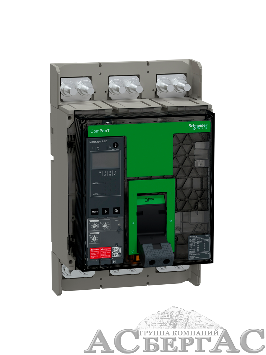 NS1600H Автоматический выключатель 3-полюсный, 1600А, MIC 2.0E, 70 kA Schneider Electric