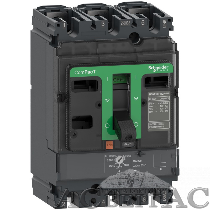 NSX250HB2 3P MA 220 Автоматический выключатель 3-полюсный, 220А100kA Schneider Electric