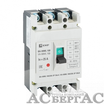 ВА-99МL Автоматический 3-х полюсный выключатель в литом корпусе 25А 18кА Basic EKF