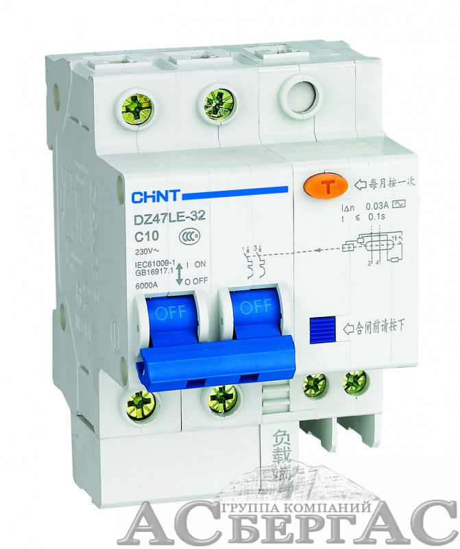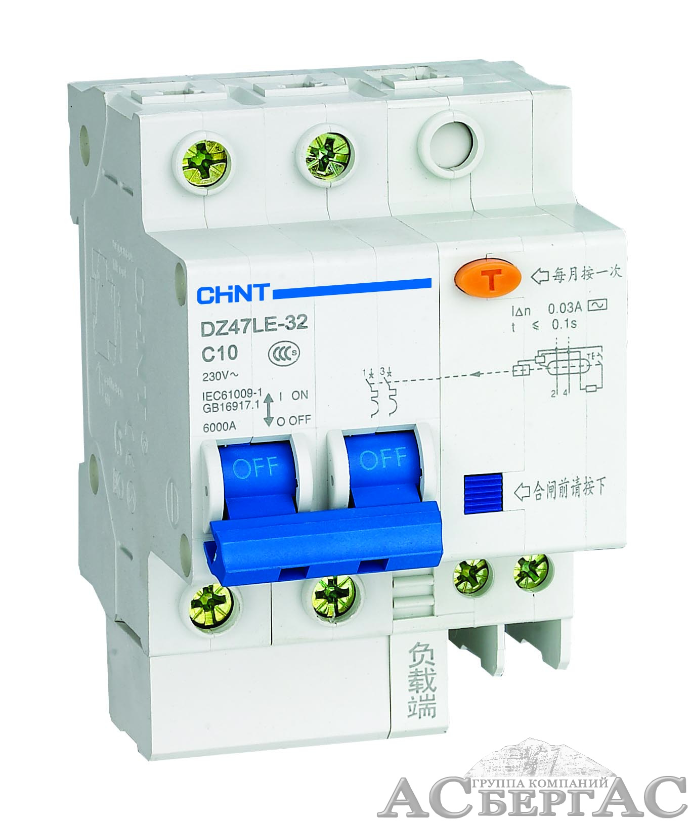 DZ47LE-32 Дифф. автомат 2P 10A 300mA тип AC 6kA (хар-ка С) CHINT