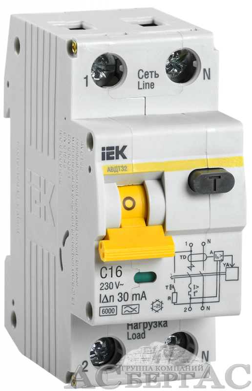 АВДТ 32 Дифф. автомат 2-полюсный 16А 30mA, 6kA, тип A (хар-ка B) ИЭК