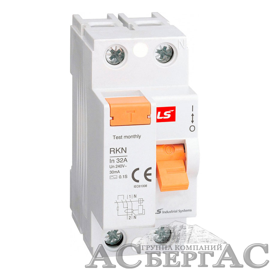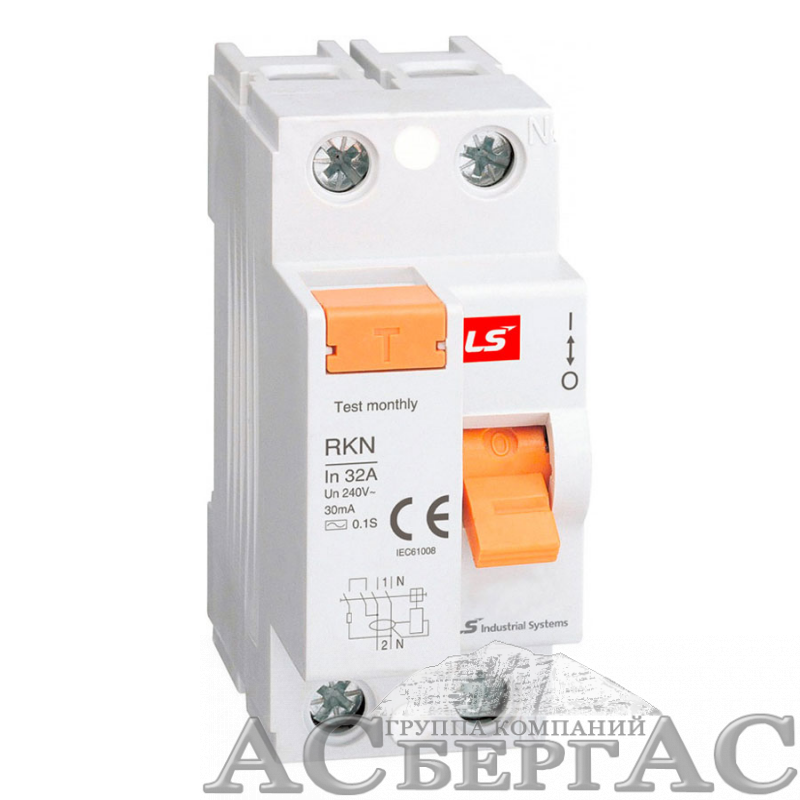 RKN 100mA Блок утечки тока (УЗО) 2-полюсный, 25A, 100mA, тип АC LSis
