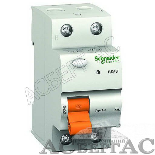ВД63 Дифф. выкл. нагрузки (УЗО) 2-х полюсный 40A 30mA, тип АС Домовой Schneider Electric