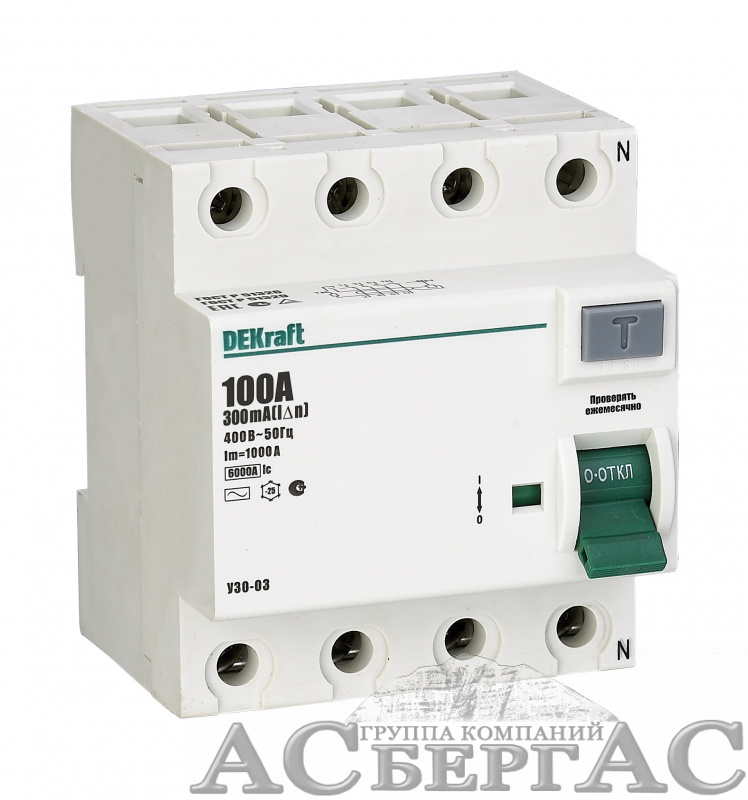 УЗО-03 Блок утечки тока 4-полюсный, 100A 30mA, тип AC, 6кА DEKraft
