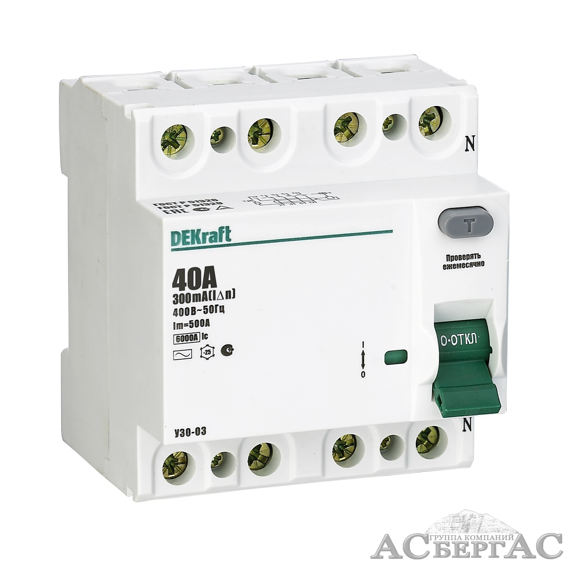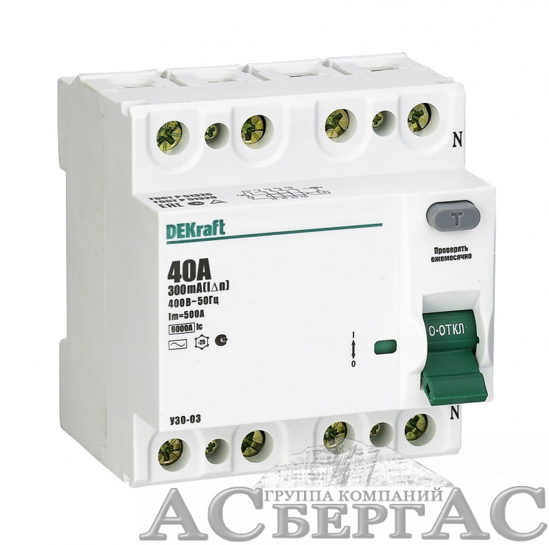 УЗО-03 Блок утечки тока 4-полюсный, 32А, 300mA, тип AC, 6кА DEKraft