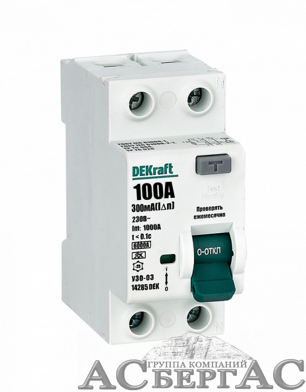 УЗО-03 Блок утечки тока 2-полюсный, 100A 300mA, тип A, 6кА DEKraft