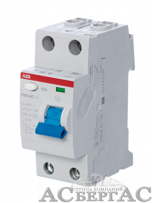 F202 AC 63/300 Блок утечки тока 2-полюсный, 63A, 300mA, тип АC (УЗО) ABB