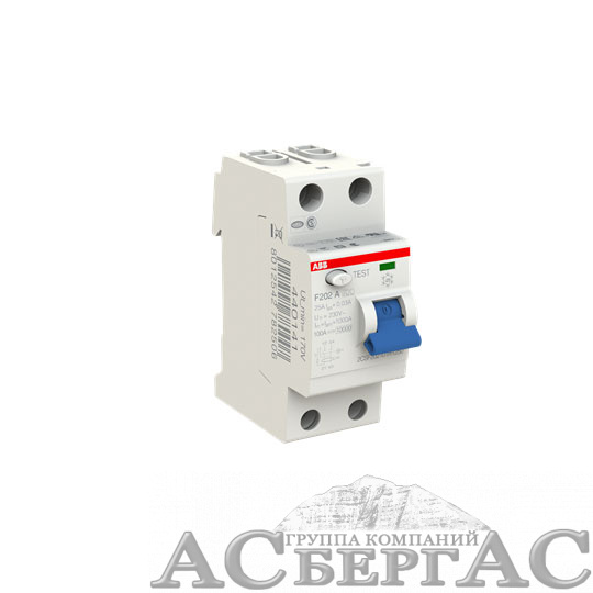 F202 A 25/30 Блок утечки тока 2-полюсный, 25A, 30mA, тип А (УЗО) ABB