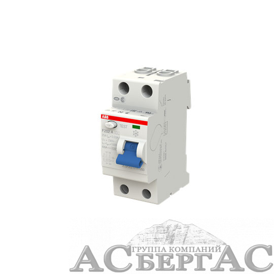 F202 AC 25/30 Блок утечки тока 2-полюсный, 25A, 30mA, тип АC (УЗО) ABB