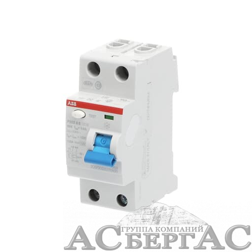 F202 A-S 63/300 Блок утечки тока 2-полюсный, 63A, 300mA, тип А-S (УЗО) ABB