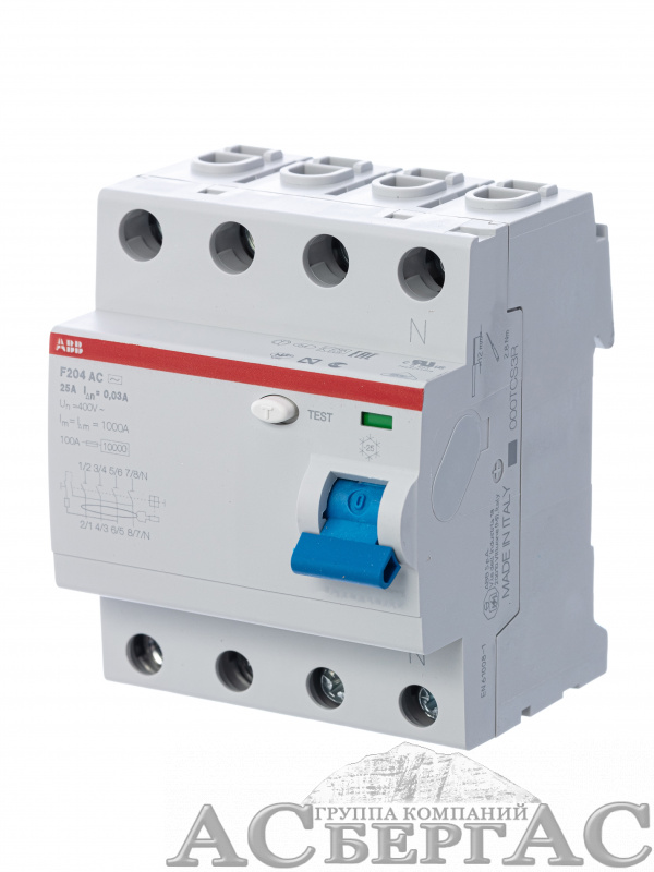 Дифференциальный выключатель F204 AC-125/0,03 типа AC, предназначен для работы в цепях переменного тока с напряжением до 400 Вольт и номинальном токе 125 Ампер. Номинальный отключающий дифференциальный ток этой модели составляет 30 миллиампер. Максимальное сечение подключаемых кабелей - 25 кв.мм.