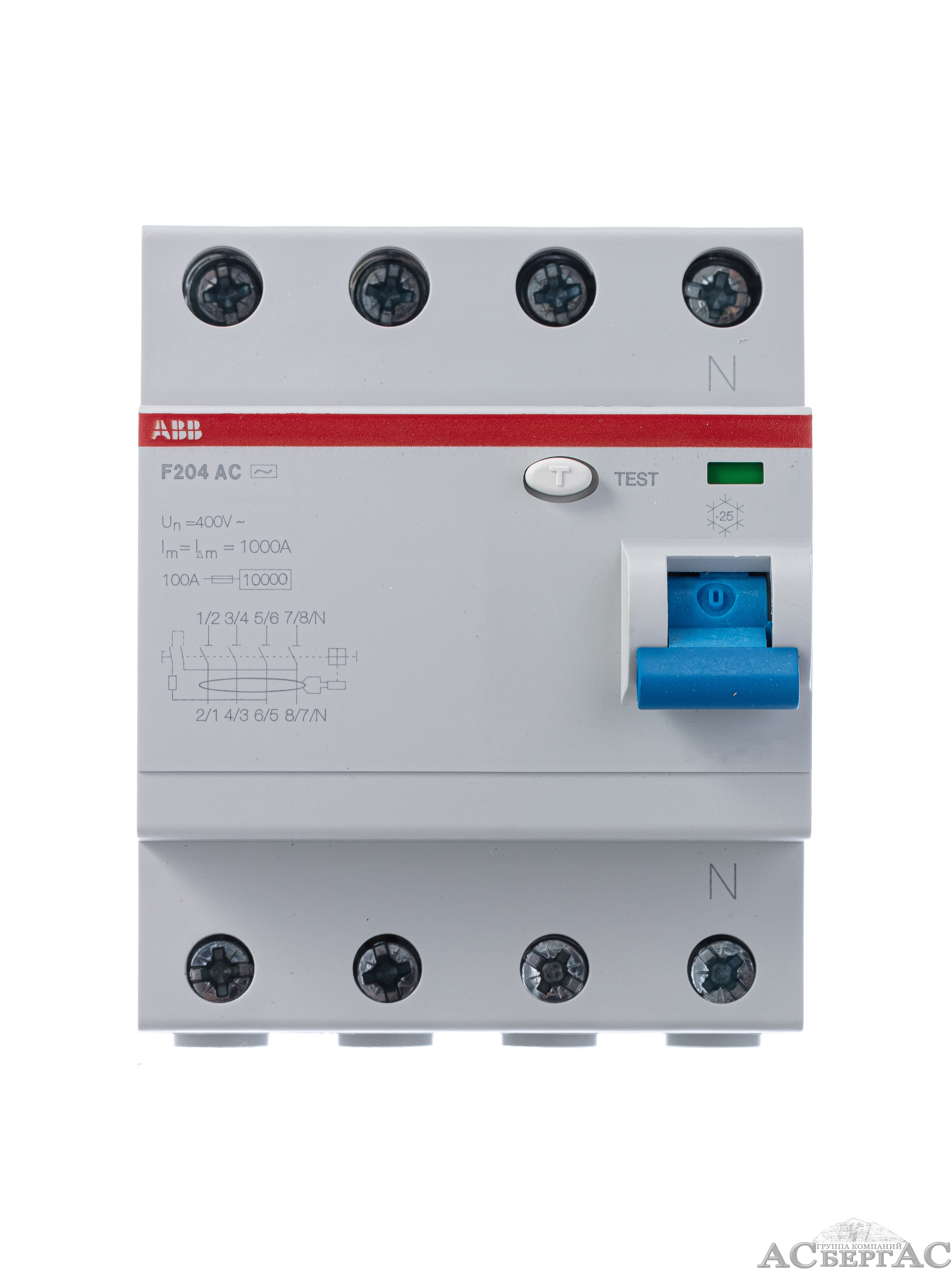 F204 AC 125/300 Блок утечки тока 4-полюсный, 125A, 300mA, тип АC (УЗО) ABB