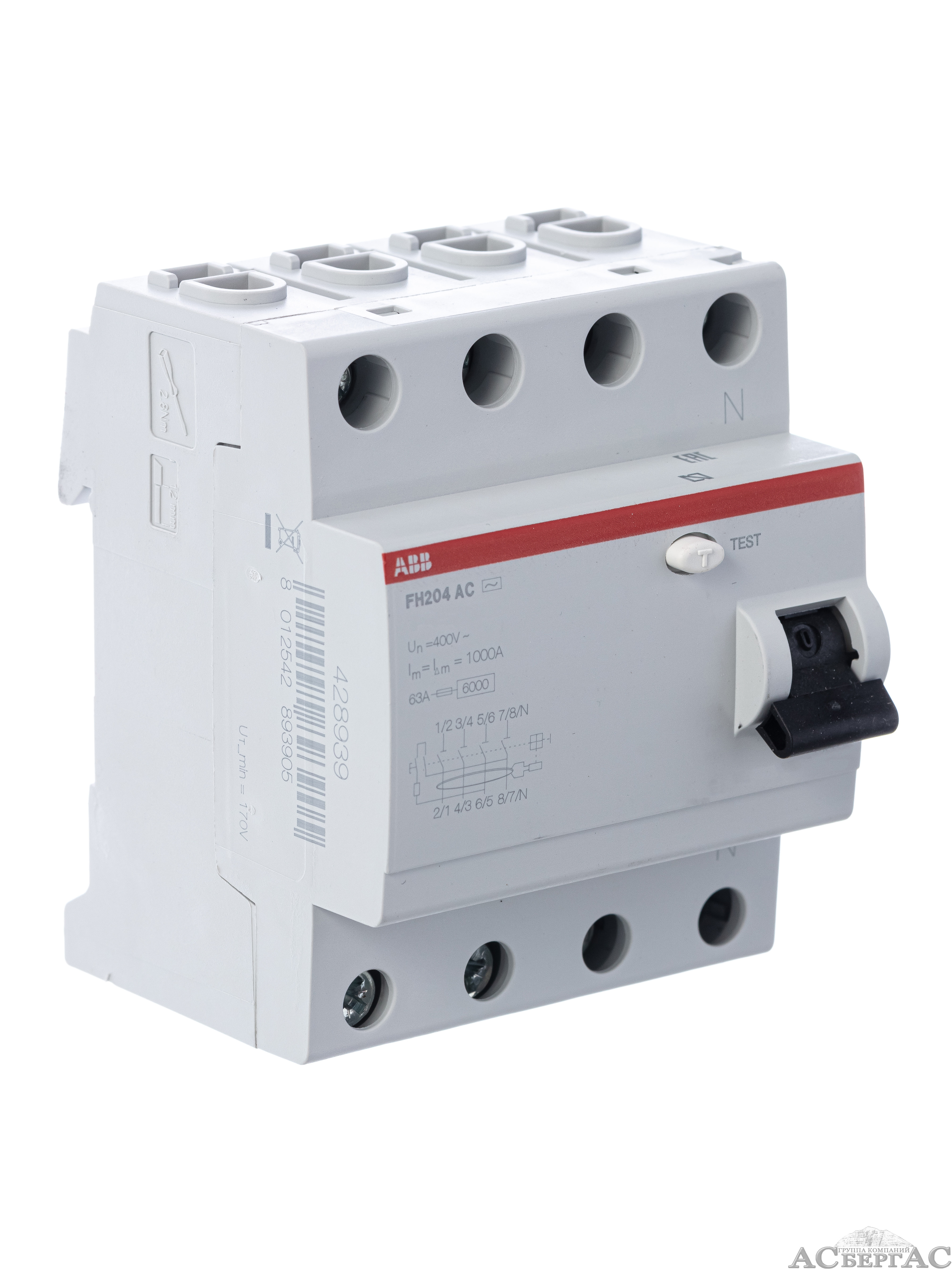 FH204 AC 25/100 Блок утечки тока 4-полюсный, 25A, 100mA, тип АC (УЗО) ABB