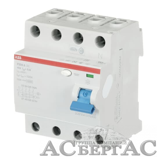 F204 A 40/100 Блок утечки тока 4-полюсный, 40A, 100mA, тип А (УЗО) ABB