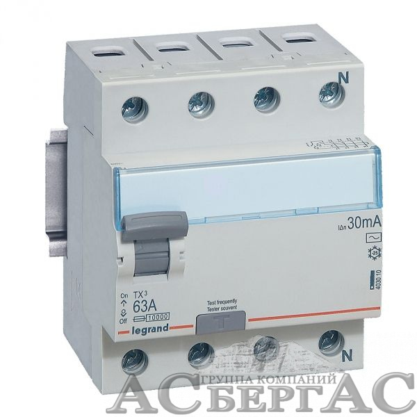 TX3 Блок утечки тока (УЗО) 4-полюсный, 40A, 30mA, тип АC Legrand