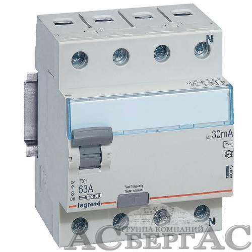 DX3 Блок утечки тока (УЗО) 4-полюсный, 63A, 30mA, тип АC Legrand