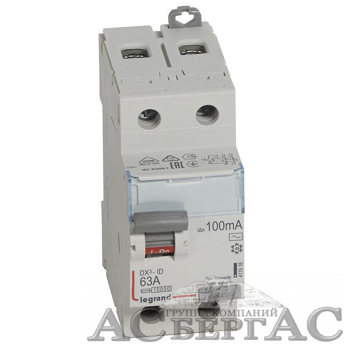 DX3 Блок утечки тока (УЗО) 2-полюсный, 63А, 100mA, тип AC Legrand