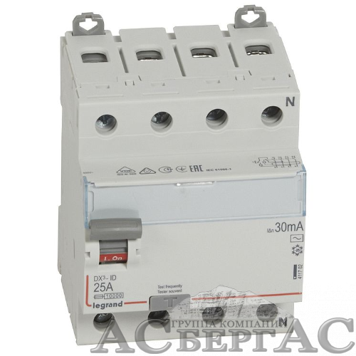 DX3 Блок утечки тока (УЗО) 4-полюсный, 25A, 30mA, тип АC Legrand