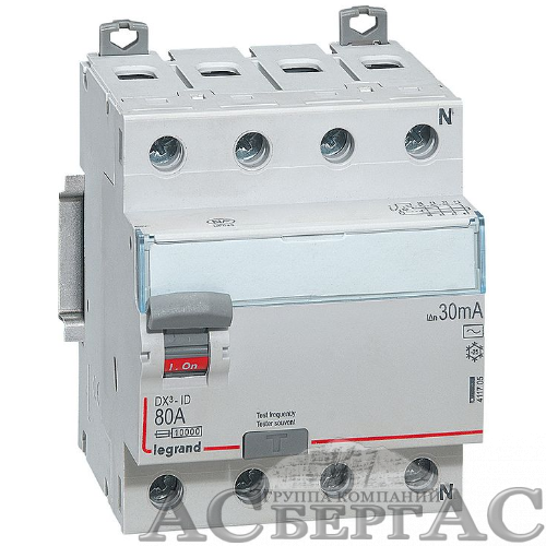 DX3 Блок утечки тока (УЗО) 4-полюсный, 80A, 30mA, тип АC Legrand