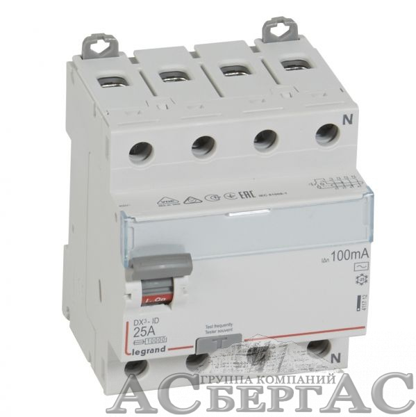 DX3 Блок утечки тока (УЗО) 4-полюсный, 25А, 100mA, тип AC Legrand