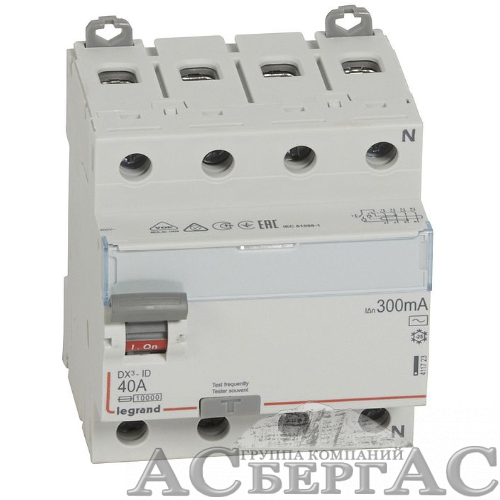 DX3 Блок утечки тока (УЗО) 4-полюсный, 40A, 300mA, тип АC Legrand