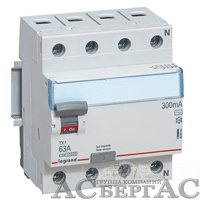 DX3 Блок утечки тока (УЗО) 4-полюсный, 63A, 300mA, тип АС Legrand
