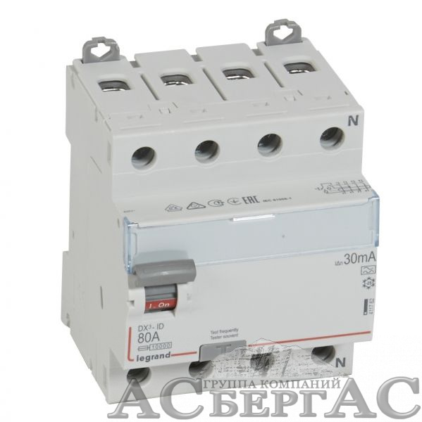 | Наименование, тип | DX3 4P 80А A 30мА N сп |