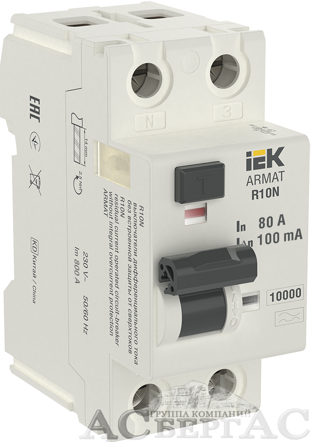 R10N Блок утечки тока 2-полюсный, 80А 100mA, 10kA, тип A ИЭК