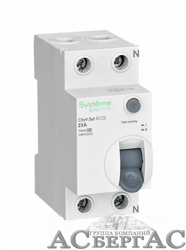 Блок утечки тока 2-полюсный, 25А, 10mA, тип A City9 (УЗО) Systeme Electric