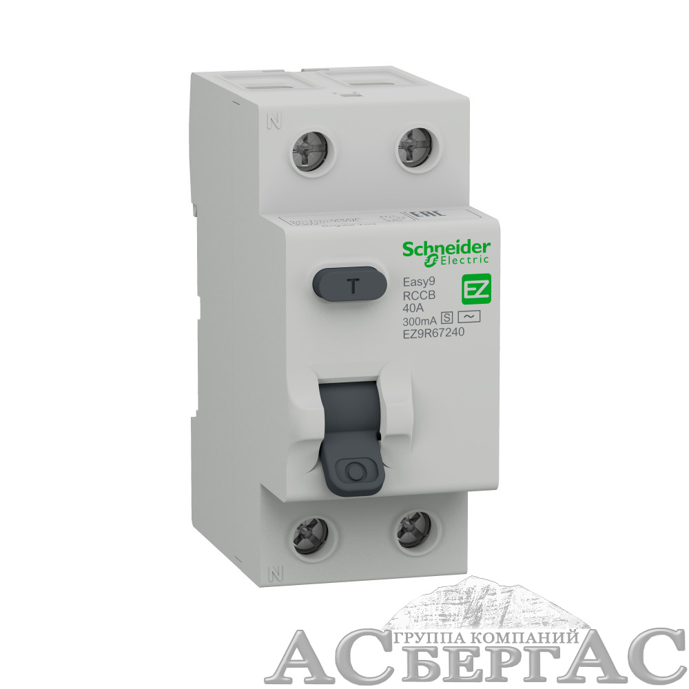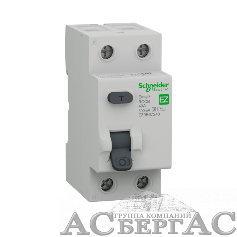 Селективный выключатель дифференциального тока (ВДТ/ УЗО) серии Easy9 Schneider Electric, 2-полюсный, номинальный ток 40А, ток утечки 300 мА, тип АС-S, ширина 2х18 мм.