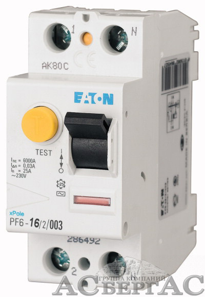 119429 PF6-16/2/003 Блок утечки тока 2-полюсный, 16А, 30mA, тип AC (УЗО) Eaton