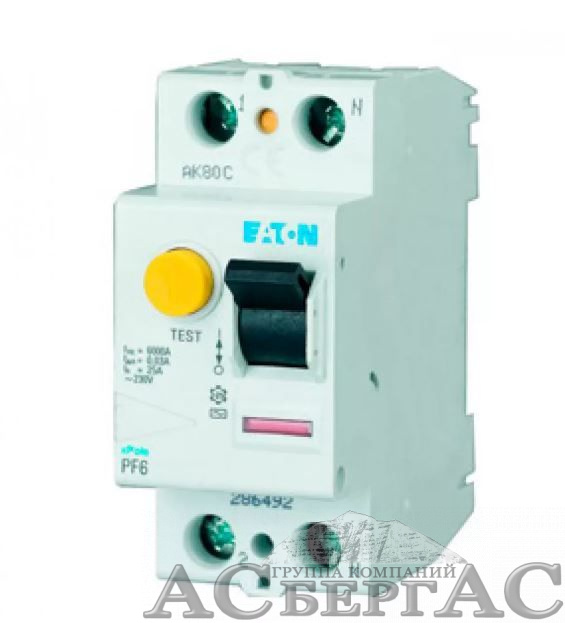 286496 PF6-40/2/003 Блок утечки тока 2-полюсный, 40А, 30mA, тип AC Eaton